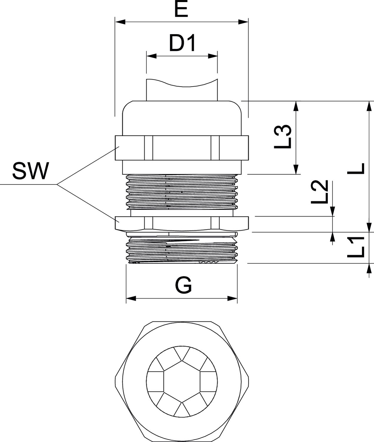 ProduktbeschreibungRobuste EMV Kabelverschraubung mit metrischem Anschlussgewinde nach IEC 423 in Hutmutterbauart für hohe Dichtigkeitsansprüche. Die Kontaktierung zwischen Verschraubung und Schirmgeflecht erfolgt über eine Kontaktfeder. Zugentlastung, Verdrehschutz und Dichtigkeit über den gesamten Spannbereich. Dichtring aus Neopren. Klemmeinsatz aus Polyamid. Mit vormontiertem O-Dichtring am Anschlussgewinde, Schutzart IP68 bei 5 bar/1 h.