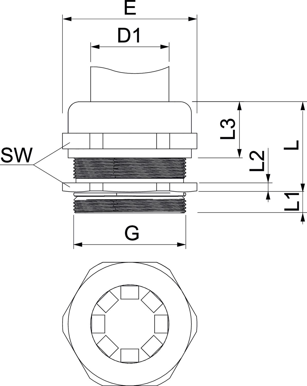 ProduktbeschreibungRobuste EMV Kabelverschraubung mit metrischem Anschlussgewinde nach IEC 423 in Hutmutterbauart für hohe Dichtigkeitsansprüche. Die Kontaktierung zwischen Verschraubung und Schirmgeflecht erfolgt über eine Kontaktfeder. Zugentlastung, Verdrehschutz und Dichtigkeit über den gesamten Spannbereich. Dichtring aus Neopren. Klemmeinsatz aus Polyamid. Mit vormontiertem O-Dichtring am Anschlussgewinde, Schutzart IP68 bei 5 bar/1 h.