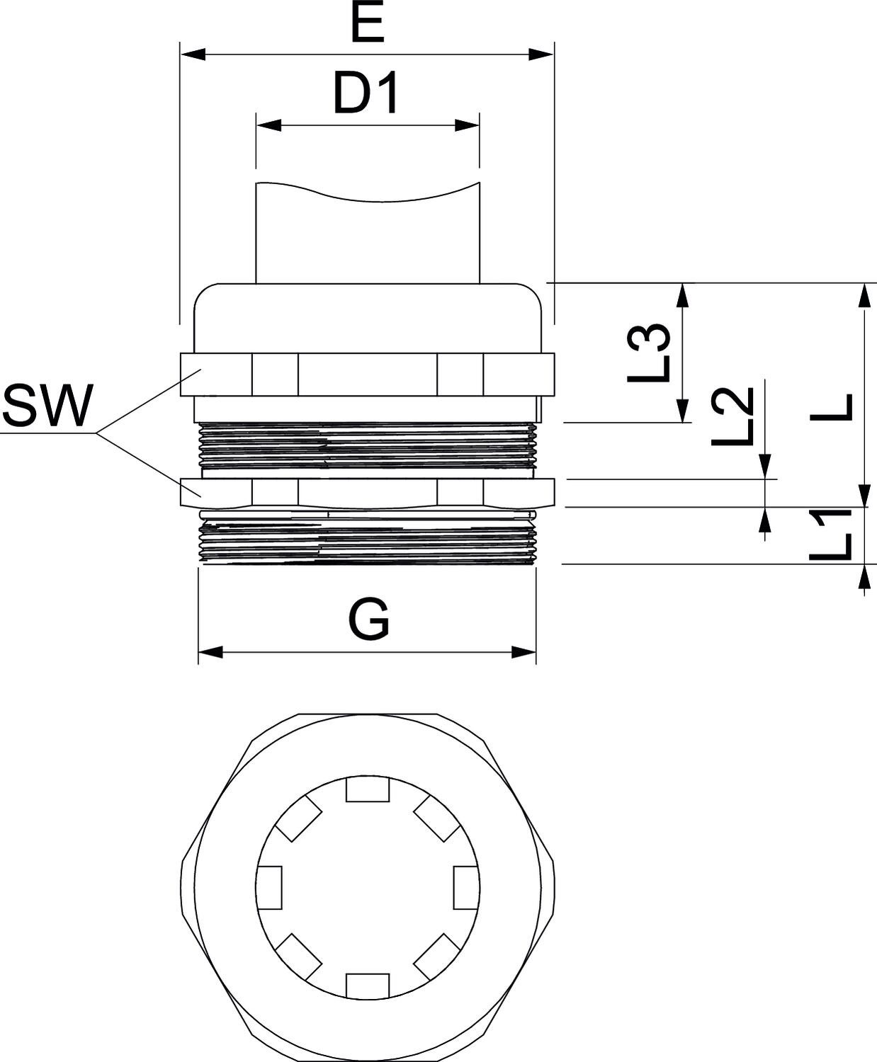 ProduktbeschreibungRobuste EMV Kabelverschraubung mit metrischem Anschlussgewinde nach IEC 423 in Hutmutterbauart für hohe Dichtigkeitsansprüche. Die Kontaktierung zwischen Verschraubung und Schirmgeflecht erfolgt über eine Kontaktfeder. Zugentlastung, Verdrehschutz und Dichtigkeit über den gesamten Spannbereich. Dichtring aus Neopren. Klemmeinsatz aus Polyamid. Mit vormontiertem O-Dichtring am Anschlussgewinde, Schutzart IP68 bei 5 bar/1 h.