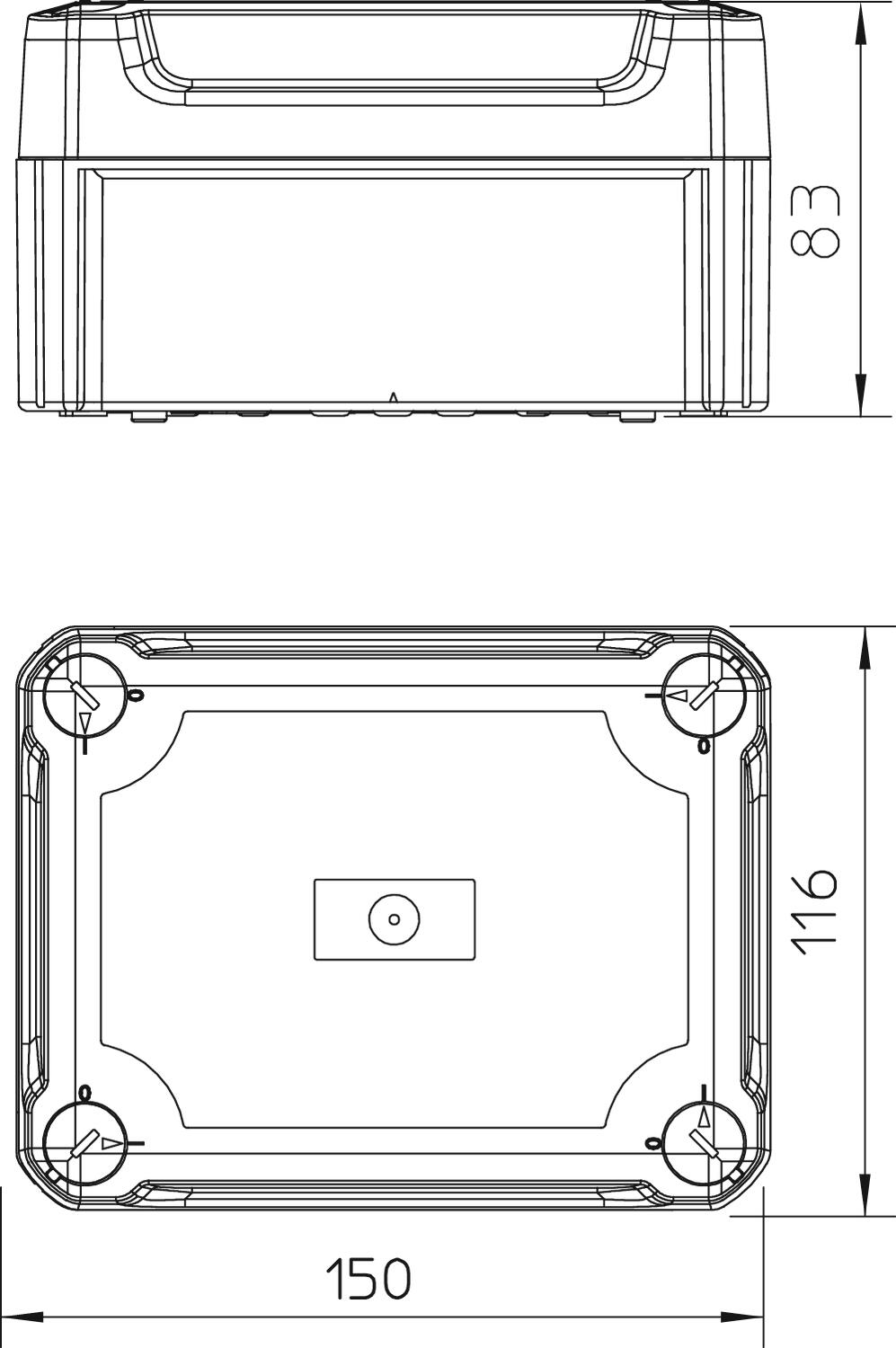 ProduktbeschreibungKabelabzweigkasten geschlossen zum Verbinden von Kabeln und Leitungen im Innenbereich und geschützten Außenbereichen. Rechteckige Form ohne Einführungen. Geeignet für die Wand-/ Deckenmontage und die Montage auf Montageblechen. Mit der Möglichkeit zur Innenbefestigung und Montage über die Eckdome. Hoher, transparenter Deckel mit Schnellverschluss, plombierbar. Hergestellt aus halogenfreien und UV-resistenten Materialien.
