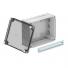 Kabelabzweigkasten gemäß DIN EN 60670. Flammwidrig nach DIN EN 60695-2-11, Prüftemperatur 650°C. Schlagfestigkeit IK05 gemäß DIN EN 50102.