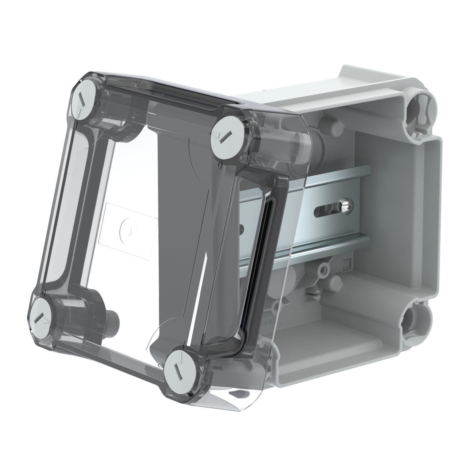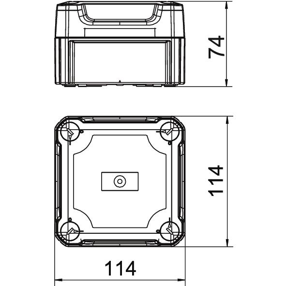 ProduktbeschreibungKabelabzweigkasten geschlossen zum Verbinden von Kabeln und Leitungen im Innenbereich und geschützten Außenbereichen. Quadratische Form ohne Einführungen. Geeignet für die Wand-/ Deckenmontage und die Montage auf Montageblechen. Mit der Möglichkeit zur Innenbefestigung und Montage über die Eckdome. Hoher, transparenter Deckel mit Schnellverschluss, plombierbar. Hergestellt aus halogenfreien und UV-resistenten Materialien.