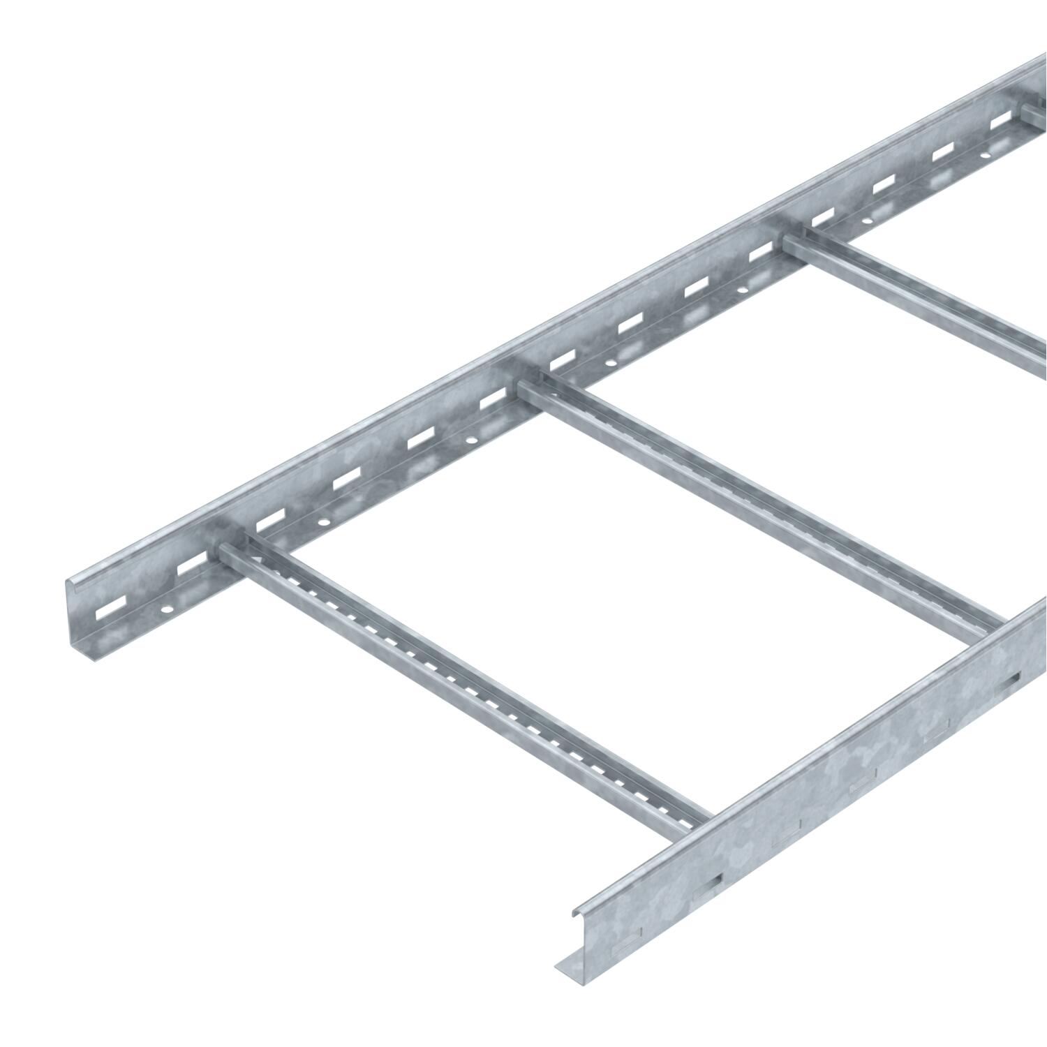 ProduktbeschreibungKabelleiter in Seitenhöhe 60 mm mit eingeschweißten, nach oben offenen C30 Profilsprossen. Eingerollter Seitenholm zur Verstärkung und als Kantenschutz. Die Befestigung auf dem Ausleger erfolgt mit Klemmstücken Typ LKS 40. Das Schlitzmaß der Sprosse beträgt 16,5 mm, die passende Bügelschelle ist der Typ BS-H....