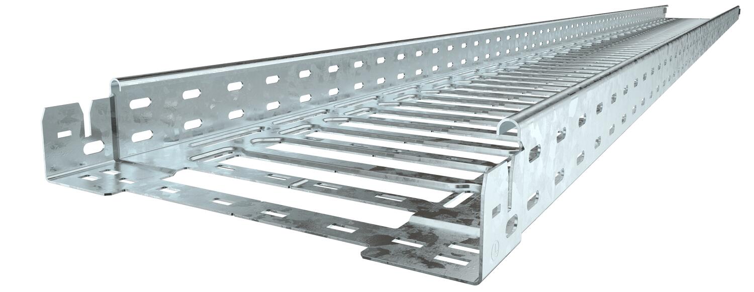 Ab Kabelrinnenbreite 200 mm mit 30% Lochanteil, nach VdS Richtlinie 2092 zum Einsatz unter Sprinkleranlagen geeignet.