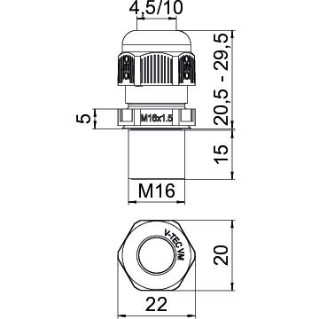 ProduktbeschreibungKabelverschraubung mit metrischem Anschlussgewinde in Hutmutterbauart, für Kabelabzweigkästen, Gehäuse, Verteilerschränke im privaten und industriellen Bereich. Mit Zugentlastung und integrierter Dichtlippe, geprüft nach DIN EN 62444. Schutzklasse IP68. Einsetzbar von -20°C bis +65°C.