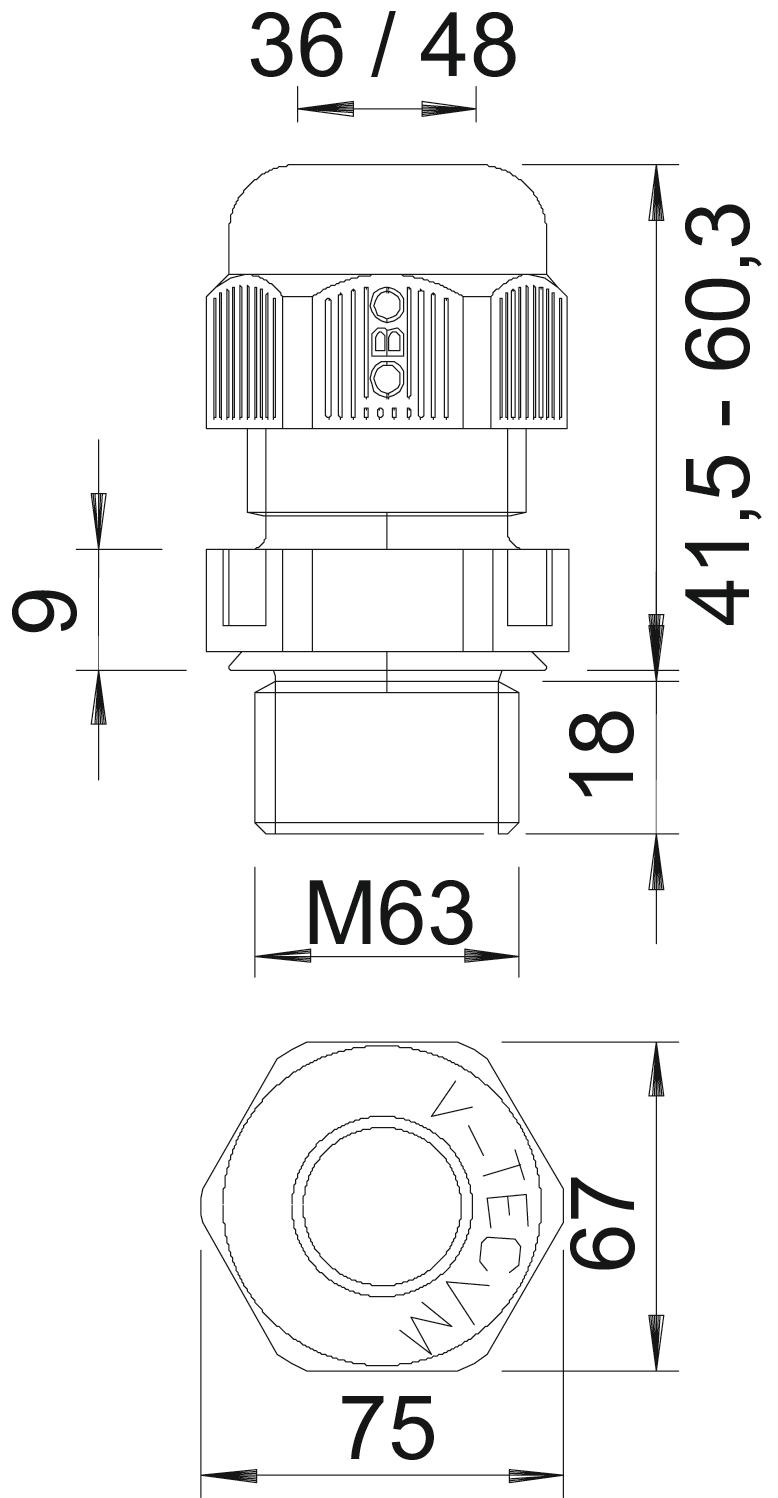 Art der Dichtung Dichtring Ausführung gerade Biegeschutz nein CO2 Fußabdruck (GWP) Cradle-to-Gate 0,448 kg CO2e / 1 Stück Dichtbereich D max. 48 mm Dichtbereich D min. 36 mm Dimension M63 explosionsgeschützt nein Farbe lichtgrau; RAL 7035 Flachkabelverschraubung nein flammwidrig nach VDE 0471/DIN 695 Teil 2-1, Prüftemperatur 650°C für Ex-Zone ohne für Ex-Zone Gas ohne für Ex-Zone Staub ohne Gewinde M63 x 1,5 Gewindeart metrisch Gewindelänge 18 mm Gewindenenngröße 63 Gewindesteigung 1,5 mm Glasfaserverstärkt nein Halogenfrei ja Instabiler Drehmoment 12 Nm Maß L1 18 mm Maß E 75 mm Maß L max. 60,3 mm Maß L min. 41,5 mm Maß L2 9 mm Mehrfach Dichteinsatz nein Mit Gegenmutter nein Schlagfest nein Schlüsselweite 68 Schutzart IP68 Sechskant Eckmaß 75 mm Teilbare Verschraubung nein Temperatureinsatzbereich max. 65 °C Temperatureinsatzbereich min. -20 °C Werkstoff Polyamid Zugentlastungsmöglichkeit ja - Alle Typen