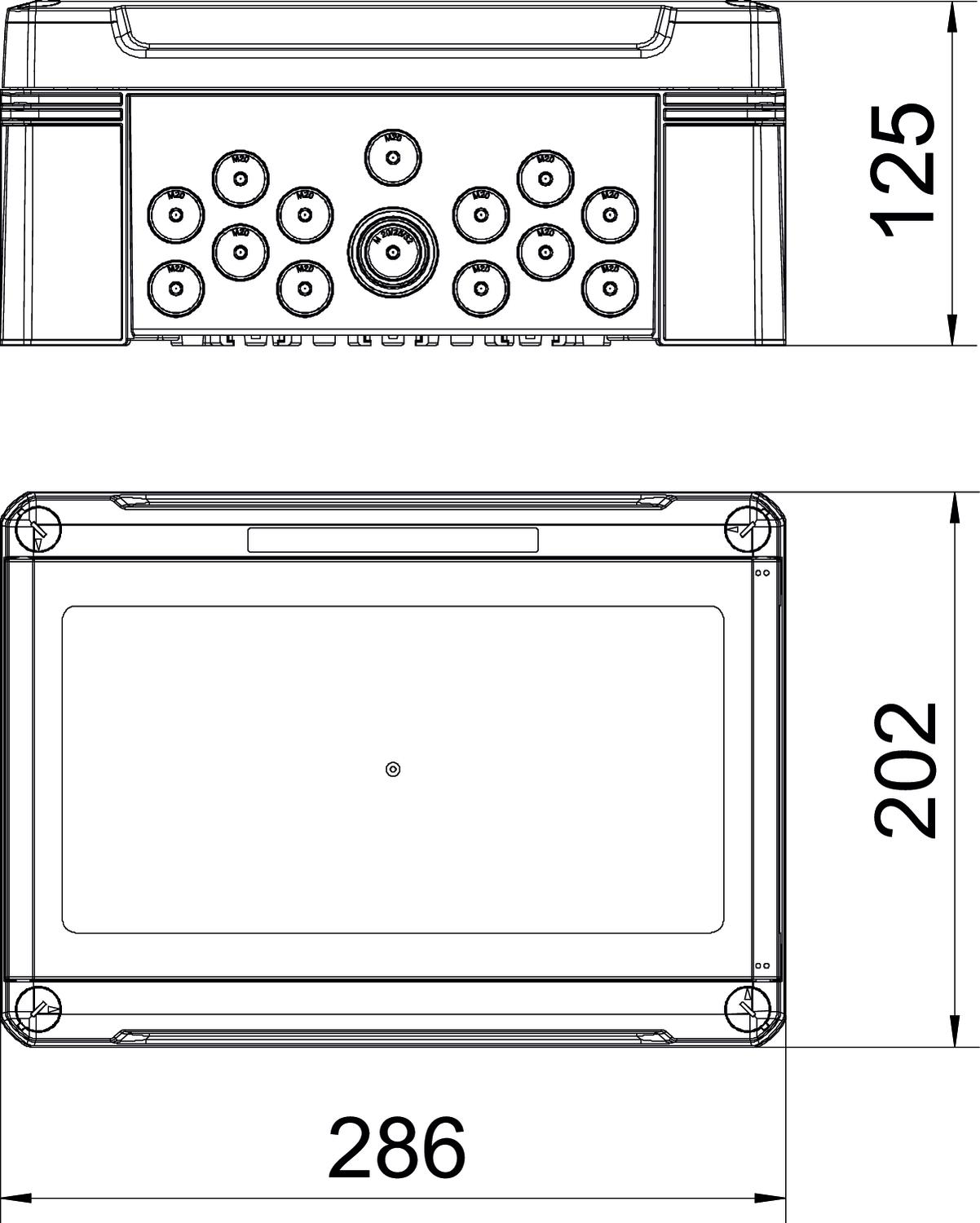 - je 1 Kombiausbrechöffnung Ø 20/25/32 mm oben und unten