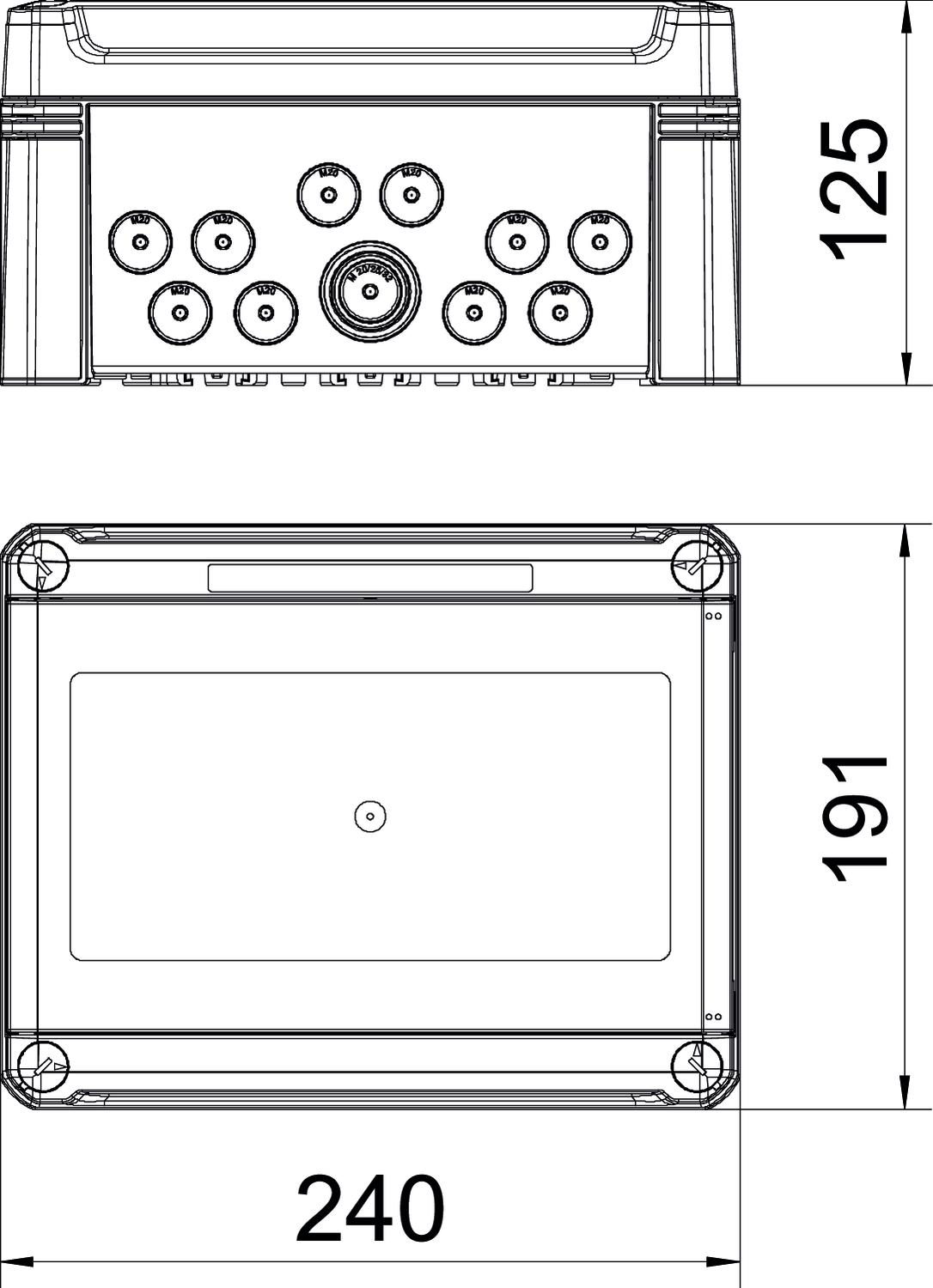 - 1 elastische Kabel- und Leitungseinführung Ø 25 mm für Kabeldurchmesser 0-22 mm