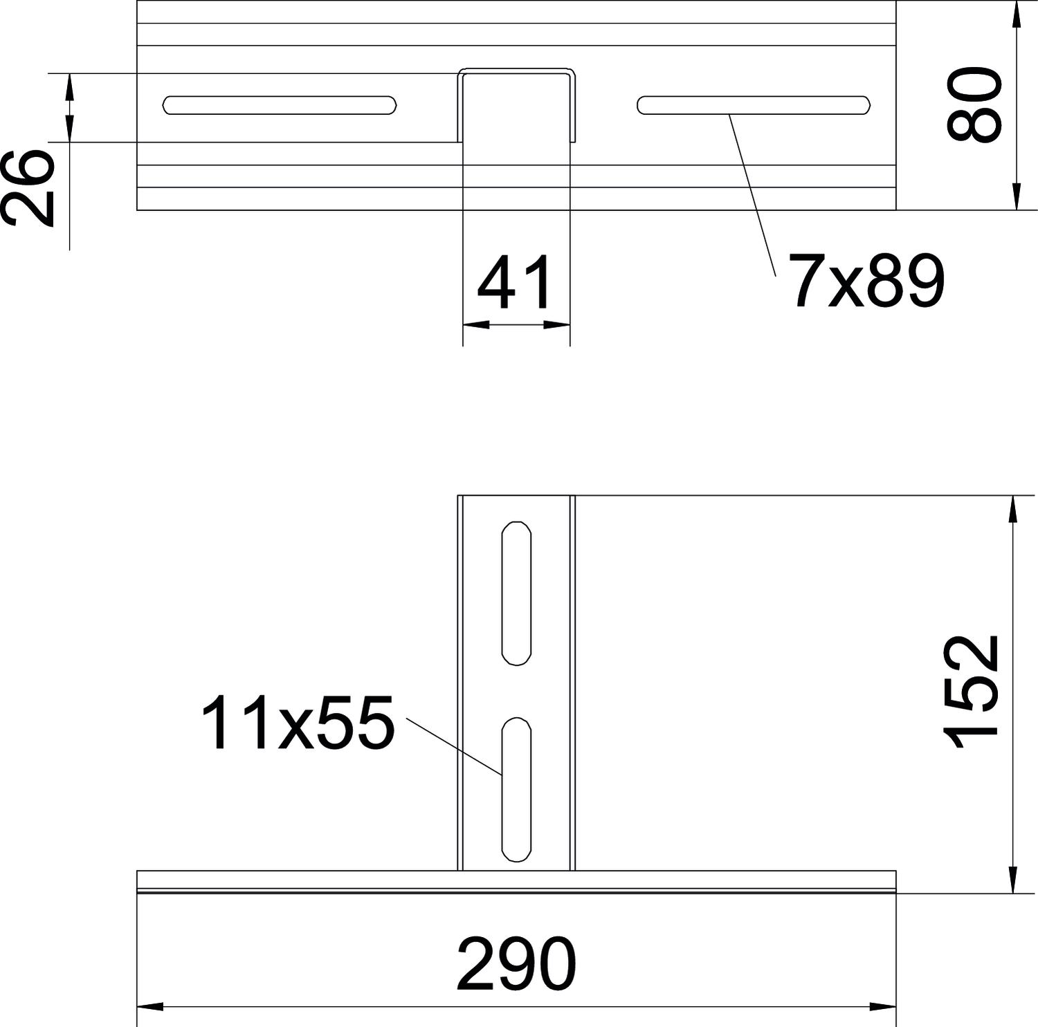 ProduktbeschreibungMittenabhängung für Kabelrinnen, zur Befestigung an US 3 Hängestielen.