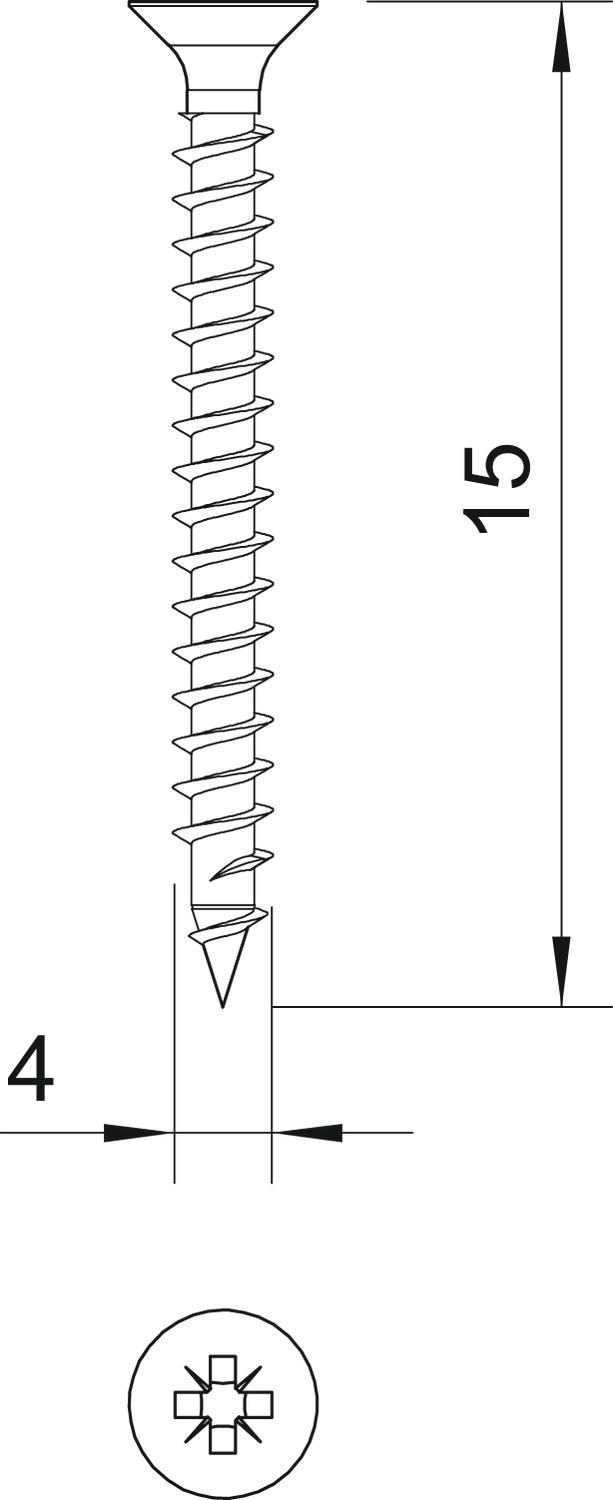 Dimension 4x15mm Gehärtet ja Kopfdurchmesser 7,5 mm Kopfform Senkkopf Länge 15 mm Maß D 4 mm Maß L 15 mm Oberfläche galvanisch verzinkt Schraubsystem Pozidriv PZ Werkstoff Stahl - Alle Typen