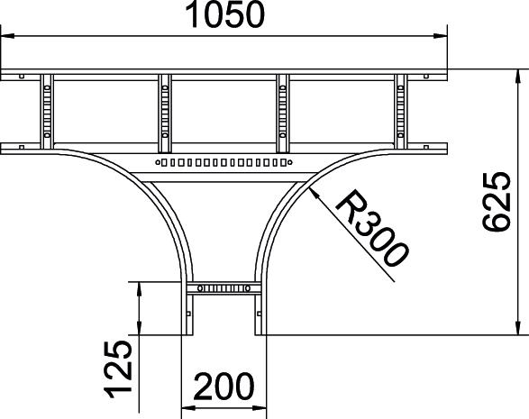 ProduktbeschreibungT-Stück, horizontal, mit geschweißter Sprosse für alle Kabelleitertypen mit der Seitenhöhe 60 mm.