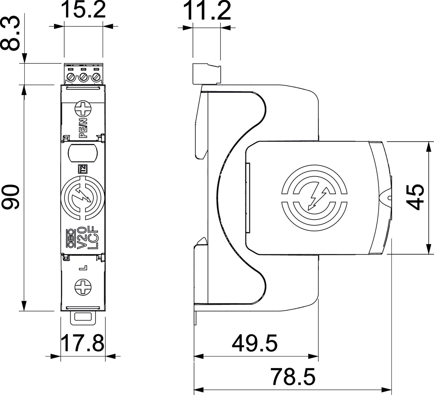 • Ableitvermögen bis 30 kA (8/20) pro Pol durch hochleistungsfähige Reihenschaltung aus Varistor und Funkenstrecke