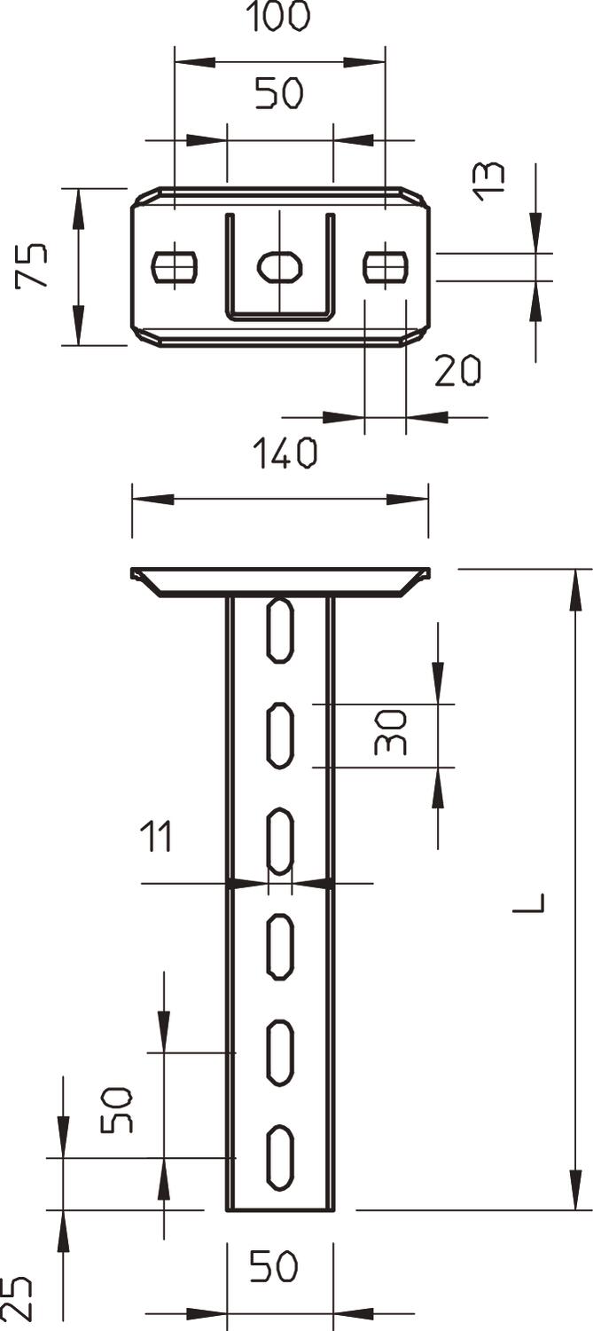 ProduktbeschreibungHängestiel (U-Profil) in der Abmessung 50 x 50 mm mit angeschweißter Kopfplatte.