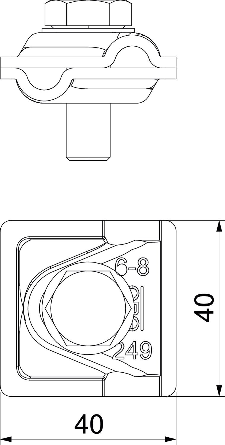 Art der Befestigungsschraube Sechskantschraube Art des Verbinders Mehrzweckverbindungsklemme Blitzstromtragfähigkeit H/100 kA CO2 Fußabdruck (GWP) Cradle-to-Gate 0,5267 kg CO2e / 1 Stück Dimension 40x40mm Geeignet für Verbindung Rundleiter Rd 6-8 / Rd 6-8 Maß A 40 mm Passung RD 6-8 / 6-8 mm Werkstoff Kupfer Zwischenplatte nein - Alle Typen