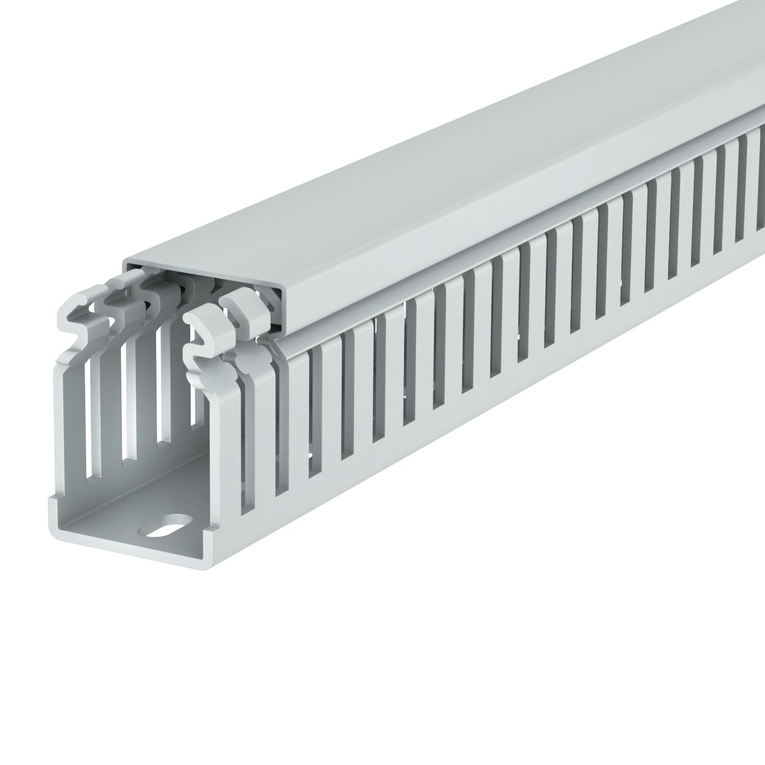 ProduktbeschreibungHalogenfreier Verdrahtungskanal nach DIN EN 50085-2-3 inkl. Oberteil und Bodenlochung zur waagerechten und senkrechten Verlegung elektrischer Kabel und Leitungen im Schaltschrank. Ausführung als DIN-Kanal. Das Ausbrechen der Stege erfolgt werkzeuglos. Bodenbündiges Ausführen ist durch Sollbruchstellen möglich. Geprüft nach DIN EN 50085-2-3. Sonderlängen auf Anfrage.